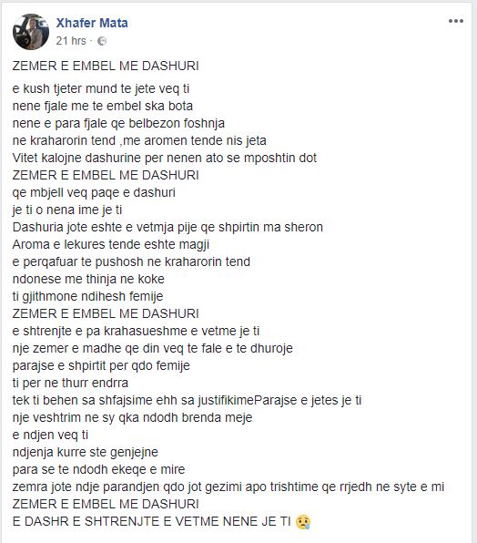 Ja poezia që Xhaferr Mata ka publikuar në faqen e tij një ditë më parë: