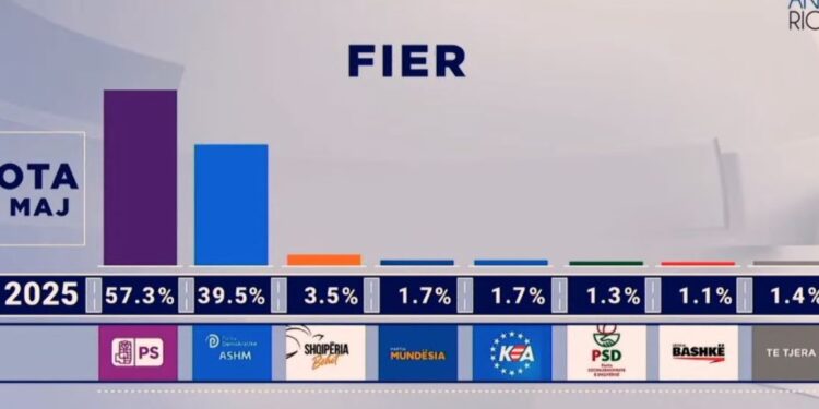 Lidhur me votën në Fier, nga të anketuarit, 57.3 përqind e tyre kanë deklaruar se do të votojnë PS.