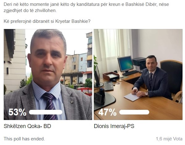 “Qoka deri tani rezulton të ketë grumbulluar 53% të votave në raport me rivalin e tij, kandidatin e Partisë Socialiste Dionis Imeraj me 47%.