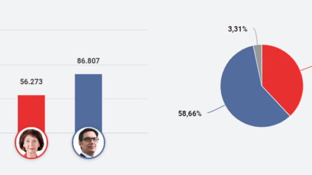 Stevo Pendarovski ka fituar: 86.807 vota apo 58,66% të votave të numëruara.