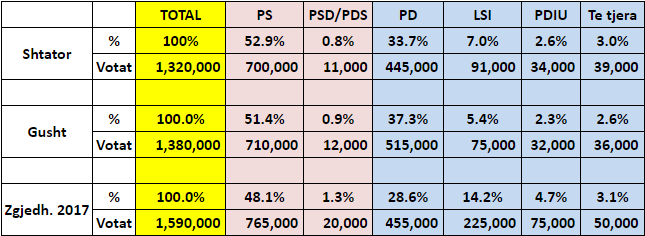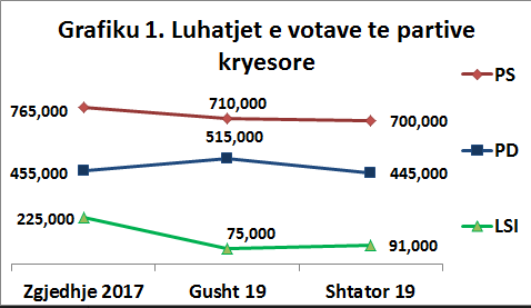 LSI-ja ka pësuar tkurrjen më dramatike të votave, krahasuar me zgjedhjet e 2017-ës; pothuaj një tkurrje prej 135 mijë votash. Ndërsa PS ka sot 65 mijë vota më pak se në zgjedhjet e 2017-ës, por mbetet partia më e madhe në vend, me diferencë të ndjeshme ndaj të tjerave. Kurse PD-ja është rikthyer në nivelin e saj depresues të 2017-ës (Shihni tabelën përmbledhëse 1).
