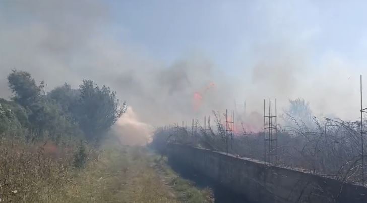 Një zjarr i fuqishëm ka përfshirë një zonë të madhe me toka djerrë dhe shkurre në vendin e njohur si “Pushimi i Shoferit” në Lushnje, i ndihmuar nga erërat e forta.