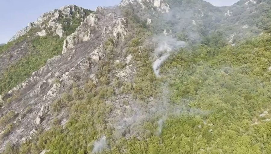 Terreni i thyer dhe era përbëjnë vështirësi për ndërhyrje direkte. Janë identifikuar dy vatra të vogla poshtë shkëmbinjve. Forcat janë të ndara në grupe të specializuara dhe të pajisura me mjete të përshtatshme për këtë terren. Mbikëqyrja ajrore me dronë vijon në mënyrë të pandërprerë.