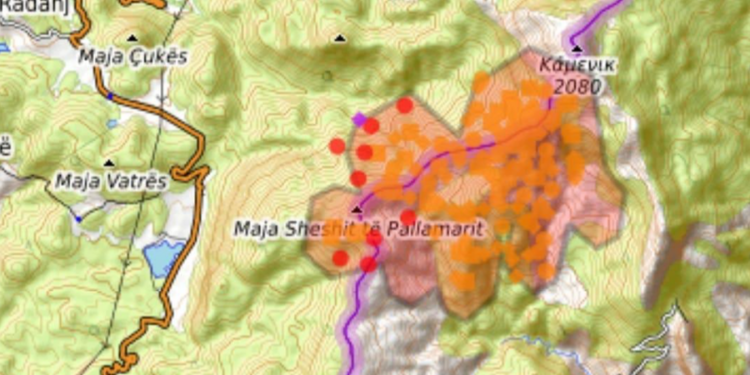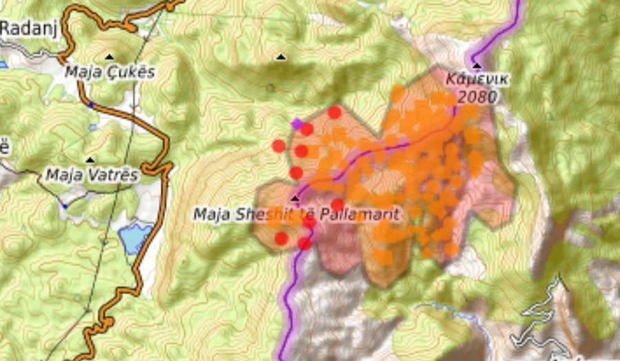Në bazë të hartës kemi një përhapje të zjarrit poshtë piramidës 15 në thellësi të territorit tonë, por në drejtim të Rezervatit Gërmenj-Shelegur nuk ka përhapje të re. Forcat (rreth 60) nga MZSH Kolonjë, drejtoria rajonale e Zonave të Mbrojtura, policia kufitare, shërbimi pyjor e vullnetarë, mbështetur edhe prej forcave të ushtrisë nga reparti i Drenovës, janë afër perimetrit të prekur, për të punuar për parandalimin e depërtimit të mëtejshëm në masivin pyjor të zonës së mbrojtur. Nga parashikimi i motit, duket se mund të kete reshje shiu në zonë rreth mesditës, duke shpresuar se do na ndihmojë për neutralizimin e vatrave.