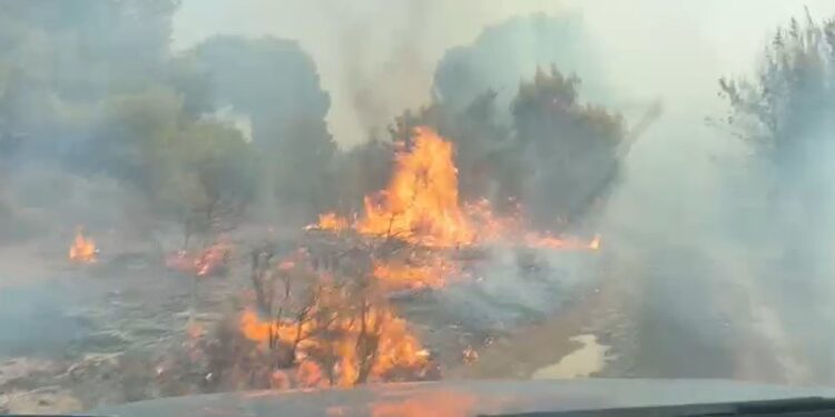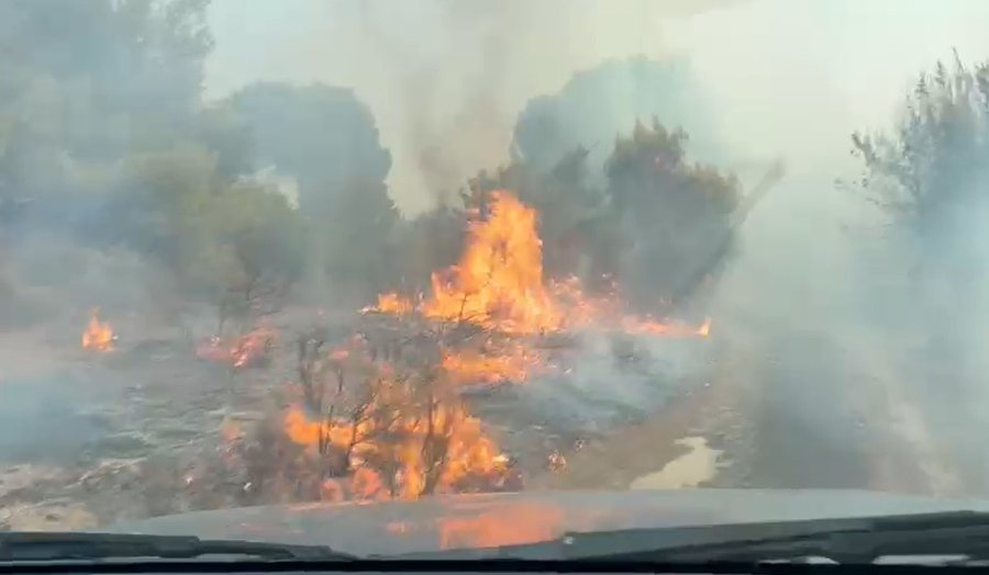 Zjarri në zonën e Pish Poros në Vlorë po vazhdon, teksa ka kapur një gjatësi prej 2–3 kilometër.
