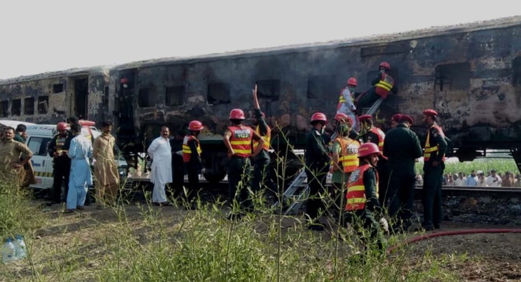 Një zjarr ka shkrumbuar totalisht një tren udhëtarësh në Pakistan, duke lënë të paktën 70 persona të pajetë.