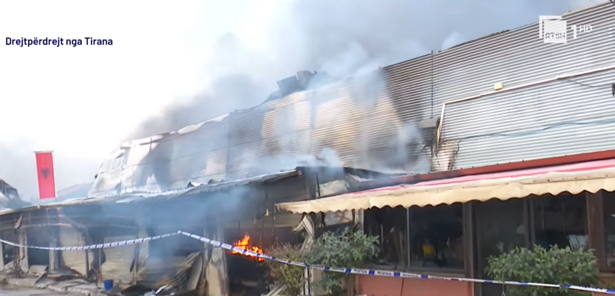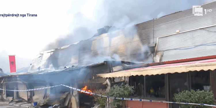 Zjarri, që ra mbrëmjen e 8 janarit, u përhap me shpejtësi për shkak të materialeve tekstile dhe plastike që ndodheshin në magazinë, duke shkaktuar flakë të mëdha dhe re të dendura tymi në zonë.