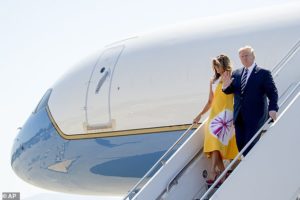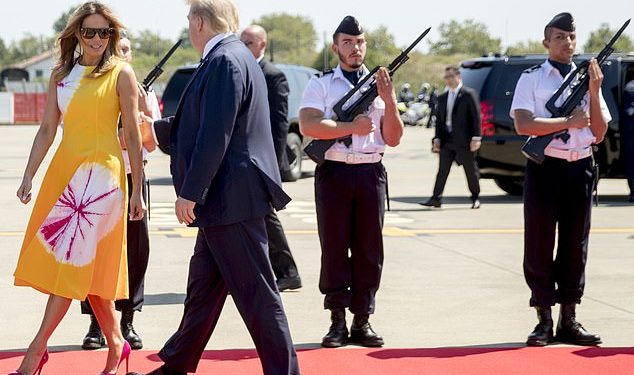 Melania shkaktoi një trazirë në aeroportin në Biarritz të shtunën. Fotoja kapi momentin kur dy ushtarë ia ngulën sytë në Zonjës së Parë ndërsa ajo parakalonte në tapetin e kuq.