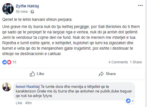Rrjedha e lumit eshte qarte, e kethjellet, kuptohet qe lumi ka zigezaket dhe llumet e veta qe do te menjanohen gjate rrugetimit, por eshte i destinuar te shkoje ne destinacionin e caktuar”, ka shkruar Zylfia, ndërsa i ka komentuar dhe vëllai i Izetit, Ismet Haxhia.